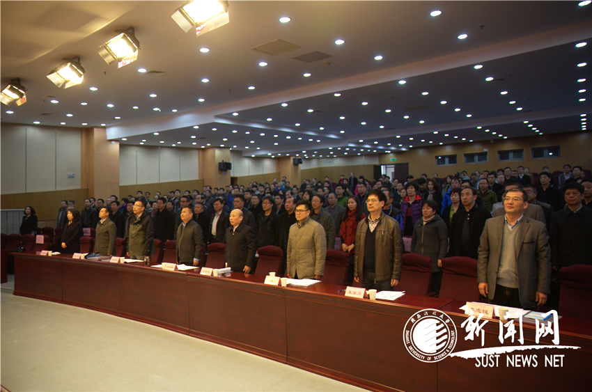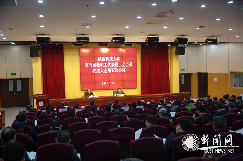 在雄壯的國歌聲中,陜西科技大學(xué)第五屆教職工代表暨工會會員代表大會第五次會議在學(xué)術(shù)報(bào)告廳隆重開幕。本次會議為期一天半,主要任務(wù)是:聽取學(xué)校工作報(bào)告;審議《陜西科技大學(xué)“十三五”教育事業(yè)發(fā)展規(guī)劃(討論稿)》,審議學(xué)校財(cái)務(wù)工作報(bào)告、工會工作報(bào)告;審議《陜西科技大學(xué)教職工代表大會實(shí)施辦法》(修訂)(討論稿)等相關(guān)議題;全面貫徹落實(shí)中央方針政策和全省教育工作會議精神,進(jìn)一步動員全校教職工增強(qiáng)改革意識,凝聚改革共識,切實(shí)把思想和行動統(tǒng)一到學(xué)校決策部署上來,為實(shí)現(xiàn)“十三五”規(guī)劃目標(biāo)任務(wù)建功立業(yè)。