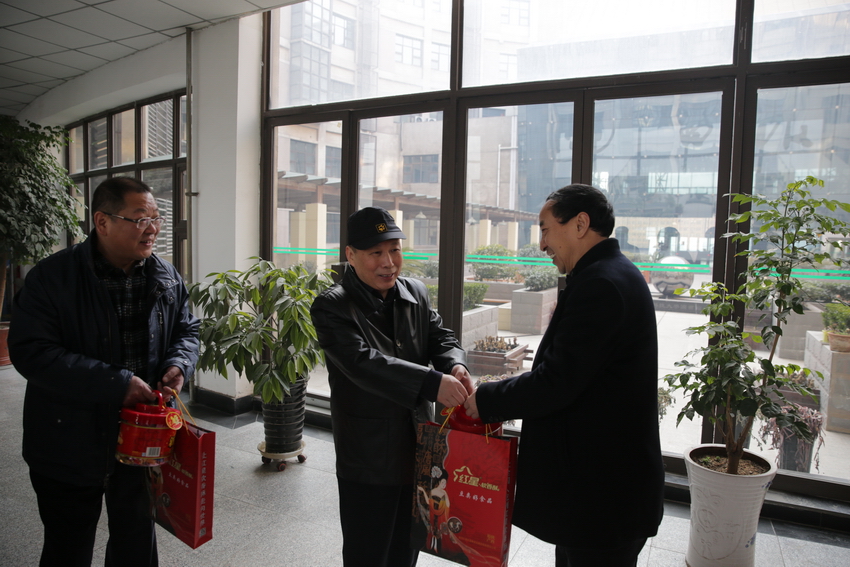 黨委書記潘中偉(圖中)、紀委書記王樹茂(圖左一)看望慰問春節值班教職工