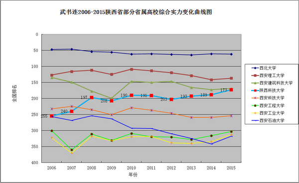 中國管理科學研究院武書連主持的《2015中國大學評價》大學排行榜于年初公布,我校綜合實力居全國高校第173名,分別位列陜西省高校和全國輕工特色院校第10位和第2位,較2014年上升16位,創近十年來歷史新高,是唯一一所排名呈總體上升趨勢的陜西省省屬高校。