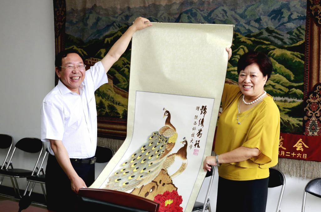 劉榮英代表南陽理工學院向我校贈送了極富南陽文化特色的烙畫。