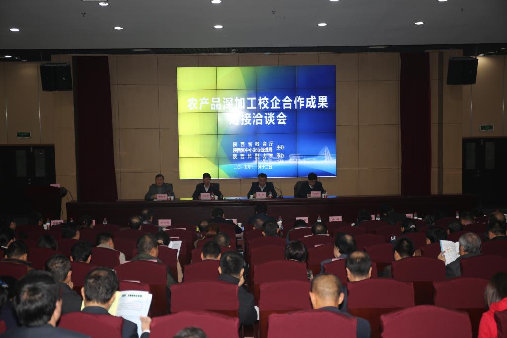 由陜西省教育廳、陜西省中小企業促進局主辦,我校承辦的陜西省農產品深加工校企合作對接洽談會11月12日在我校舉行。副校長馬建中、省中小企業局總經濟師尤戰存、省政府學位委員會秘書長袁寧出席會議。