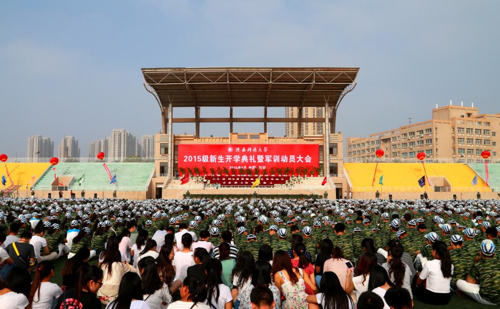 我校2015級新生開學典禮暨軍訓動員大會于7日上午舉行,五千多名新生齊聚標準田徑場,開始人生道路上又一段逐夢征程。