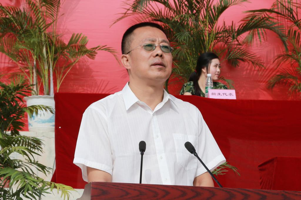 上午9時,大會在莊嚴的國歌聲中開始。姚書志發表了熱情洋溢的講話。他代表陜西科技大學全校師生員工向2015級新同學表示衷心的祝賀和熱烈的歡迎,并向新同學們提出三點要求和希望: 一是要熱愛學校。學校自1958年建校以來歷經了“三次創業、兩次搬遷、一次劃轉”的奮斗與輝煌,一代代科大師生用汗水和智慧鑄就了“自強不息、艱苦奮斗”的優良傳統和“至誠至博”的校訓精神,希望同學們要像熱愛母親一樣熱愛母校;二是要熱愛專業。希望同學們充分利用學校提供的各種條件和資源,豐富知識,鍛煉思維,提高能力;三是要熱愛生命。要博學慎思,明辨篤行,努力把自己鍛煉成一個自強不息、具有積極健康人格的人。