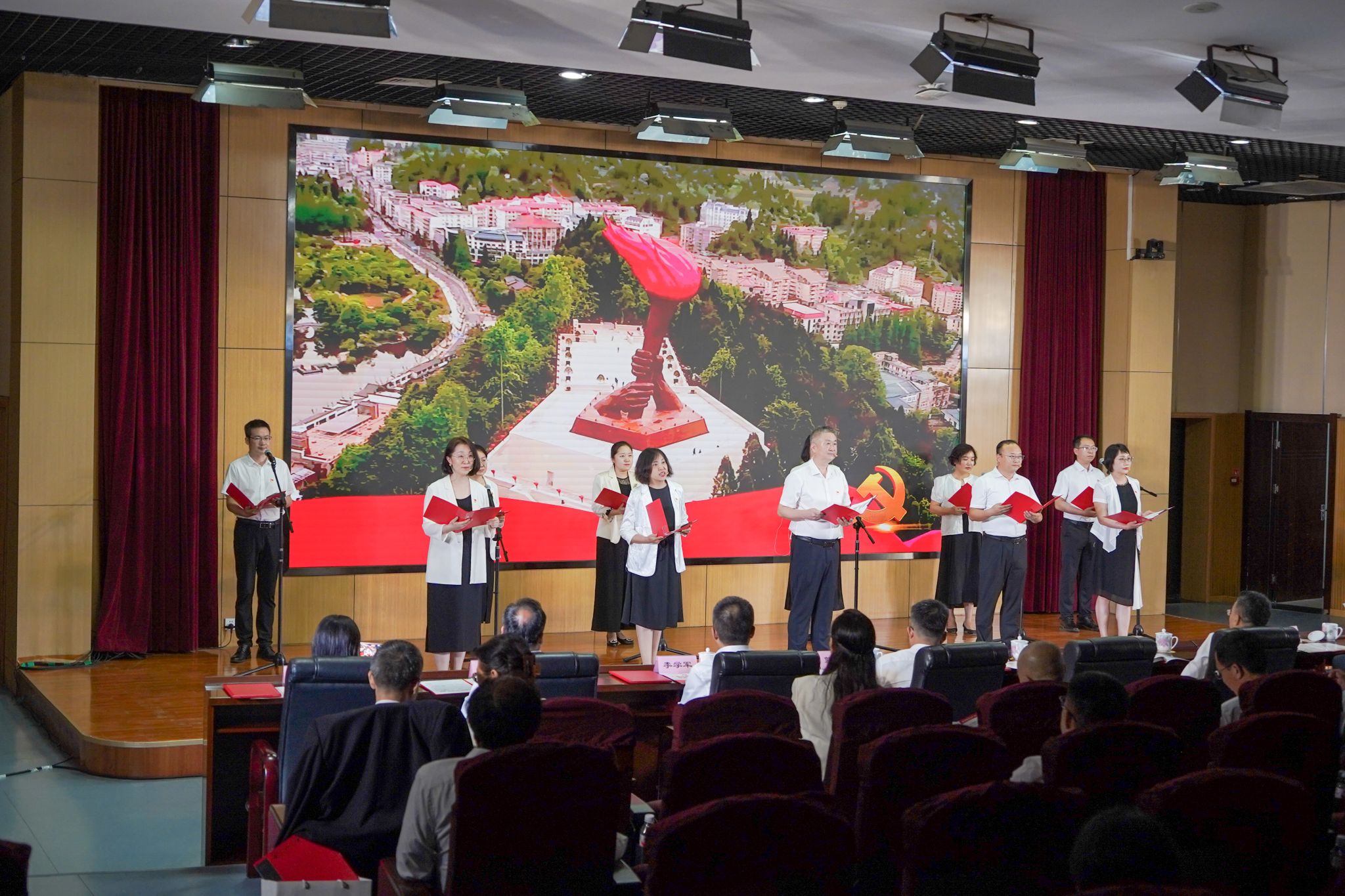 6月30日晚,陜西科技大學機關黨委舉辦“慶七一·頌黨恩”朗誦展演,熱烈慶祝中國共產黨成立104周年。全體校領導與機關黨委所屬21個黨支部的黨員干部同臺獻禮,深情朗誦。