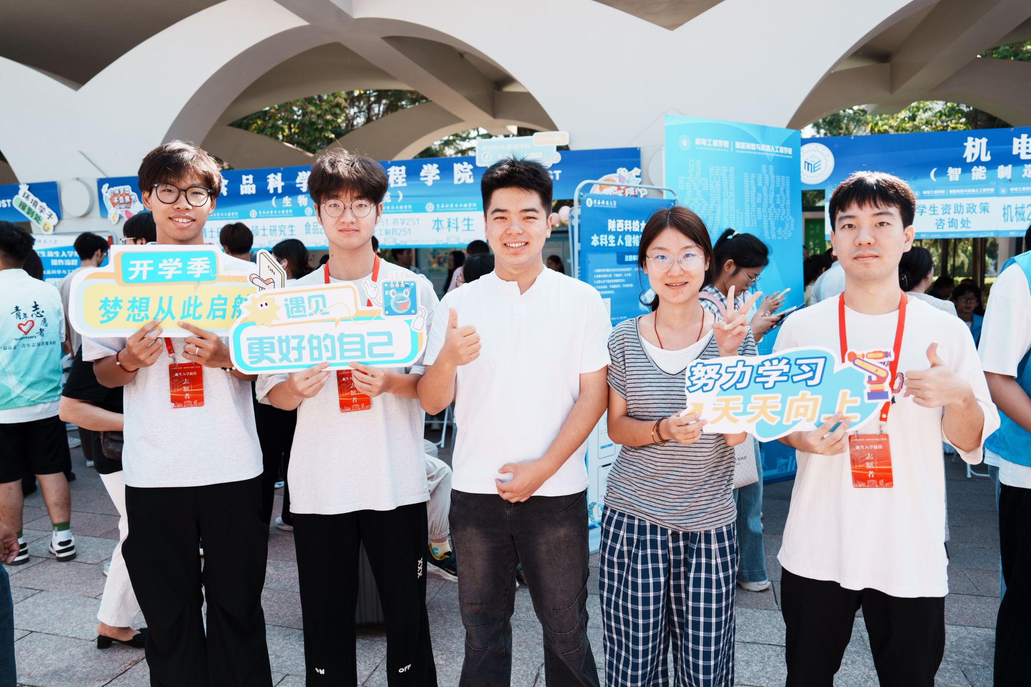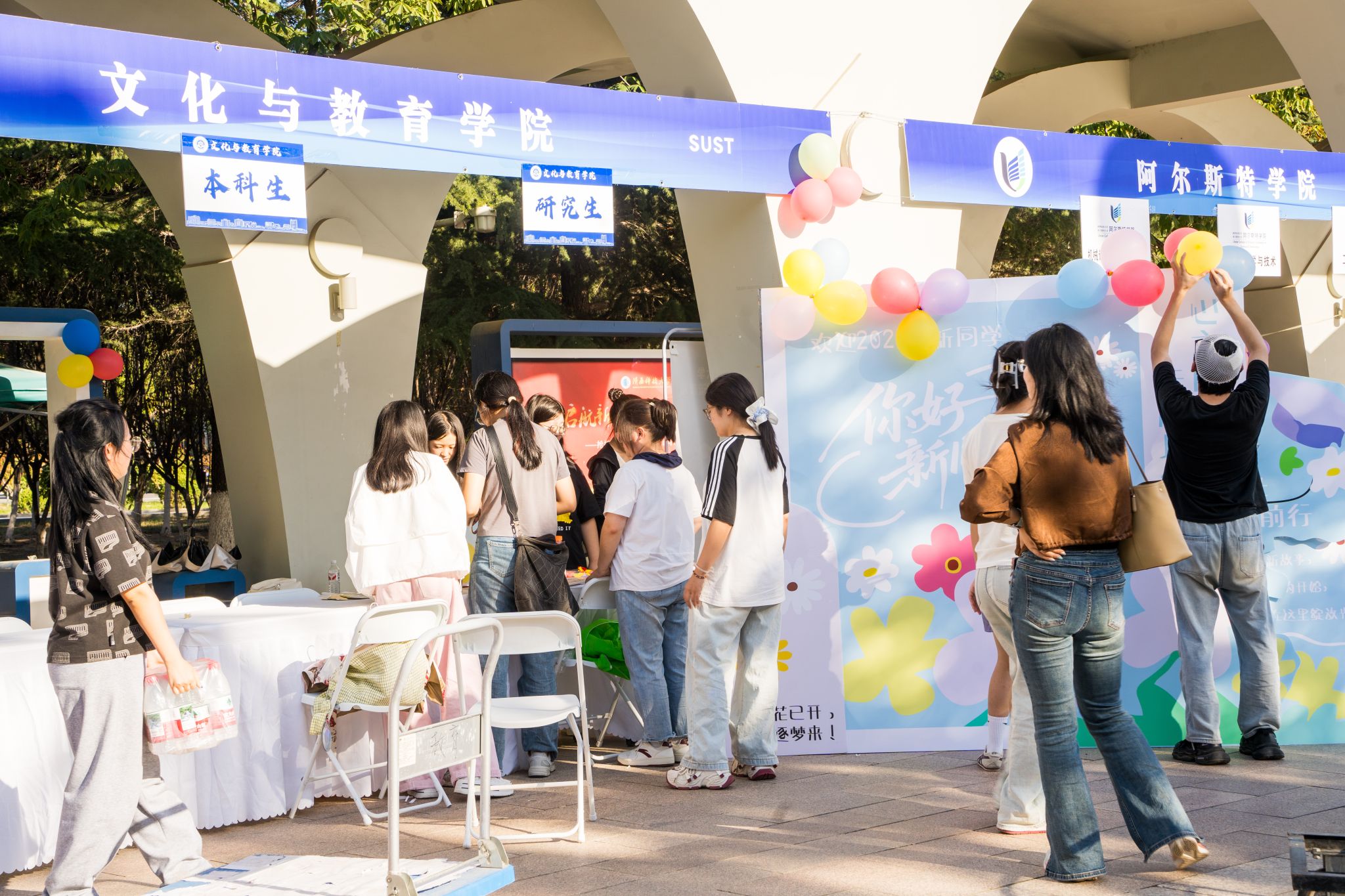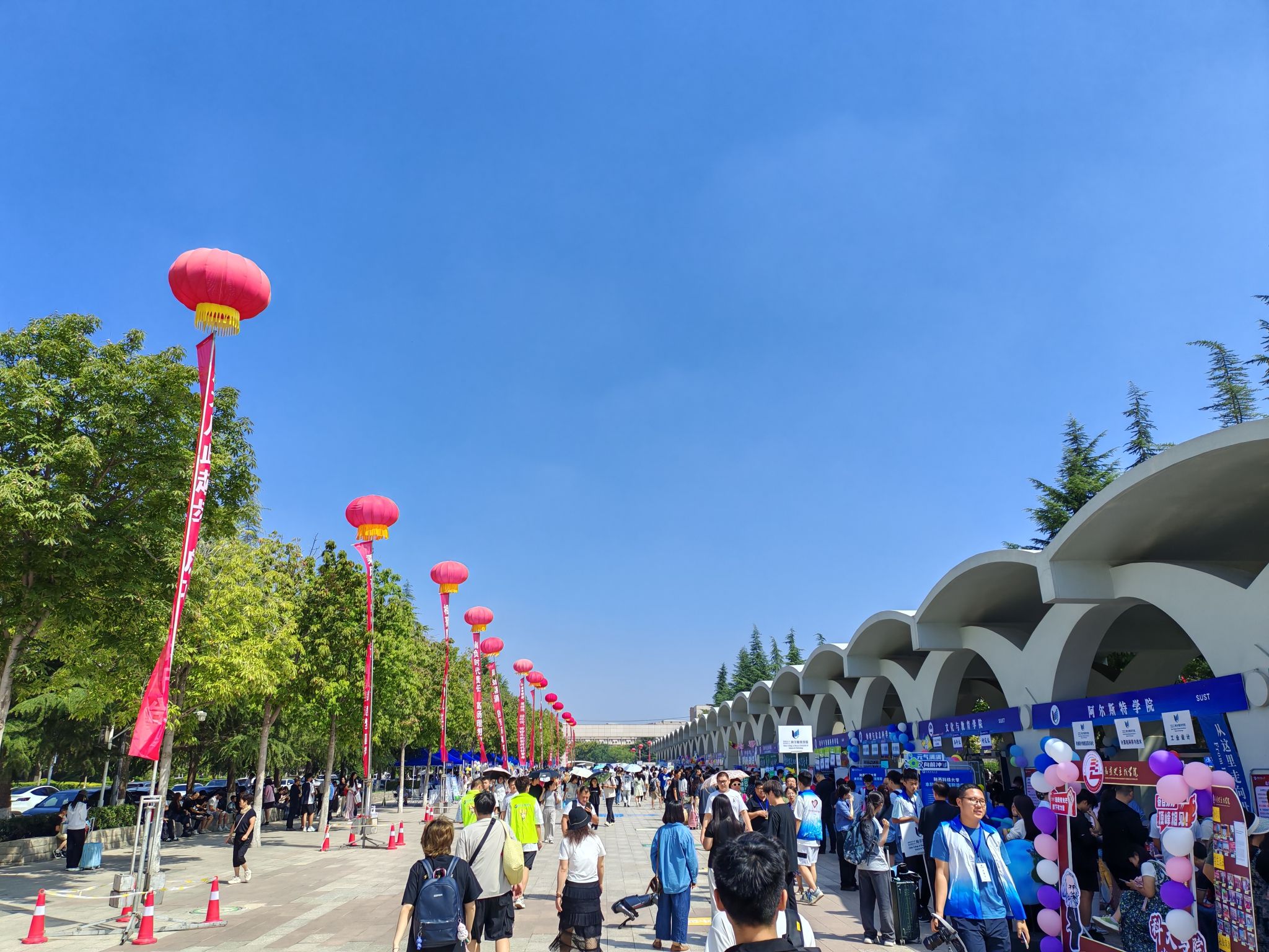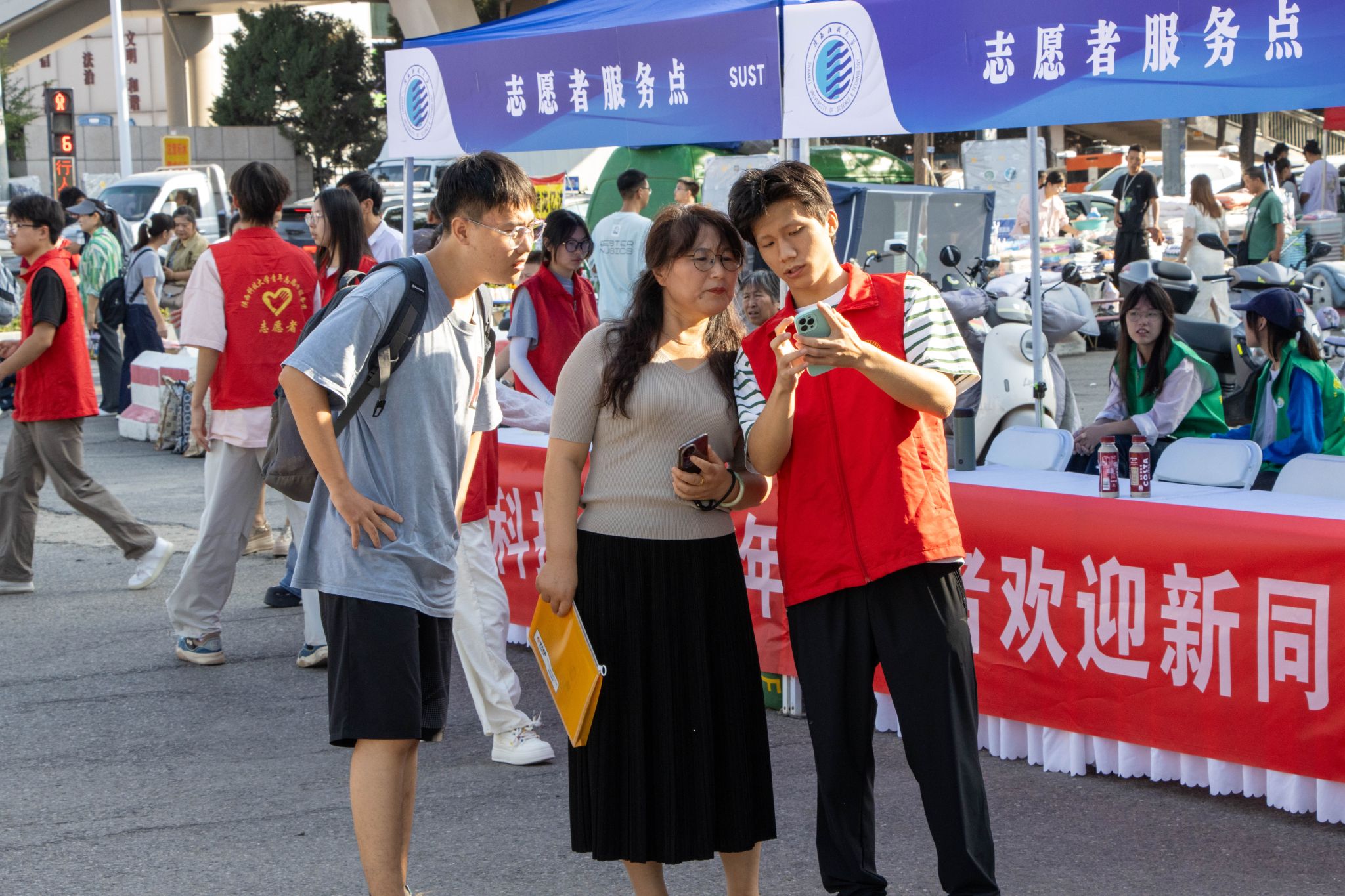 校園內(nèi),1800余名迎新志愿者身著統(tǒng)一文化衫,在車站、地鐵站及校內(nèi)100余個崗位提供“一對一”引導(dǎo)服務(wù),協(xié)助新生辦理手續(xù)、答疑解惑。家長服務(wù)區(qū)內(nèi),遮陽棚、座椅及免費(fèi)飲品一應(yīng)俱全,讓等候的家長倍感貼心。迎新展板講述著學(xué)校歷史榮光,社團(tuán)集章、文藝演出、文創(chuàng)展示等活動吸引新生踴躍參與,“自主性強(qiáng)、參與度高”的氛圍助力新生快速融入校園。