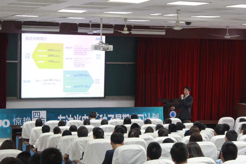 友達光電有限公司是全球前三、臺灣第一大薄膜晶體管液晶顯示器(TFT- LCD)設計、研發及制造公司,與我校一直保持著良好的合作關系。友達光電從2002年起每年都要從我校大三學生中招募暑期實習生,為企業提前選拔培育未來精英,同時也為鍛煉學生的實踐能力和綜合素質提供了良好的平臺。