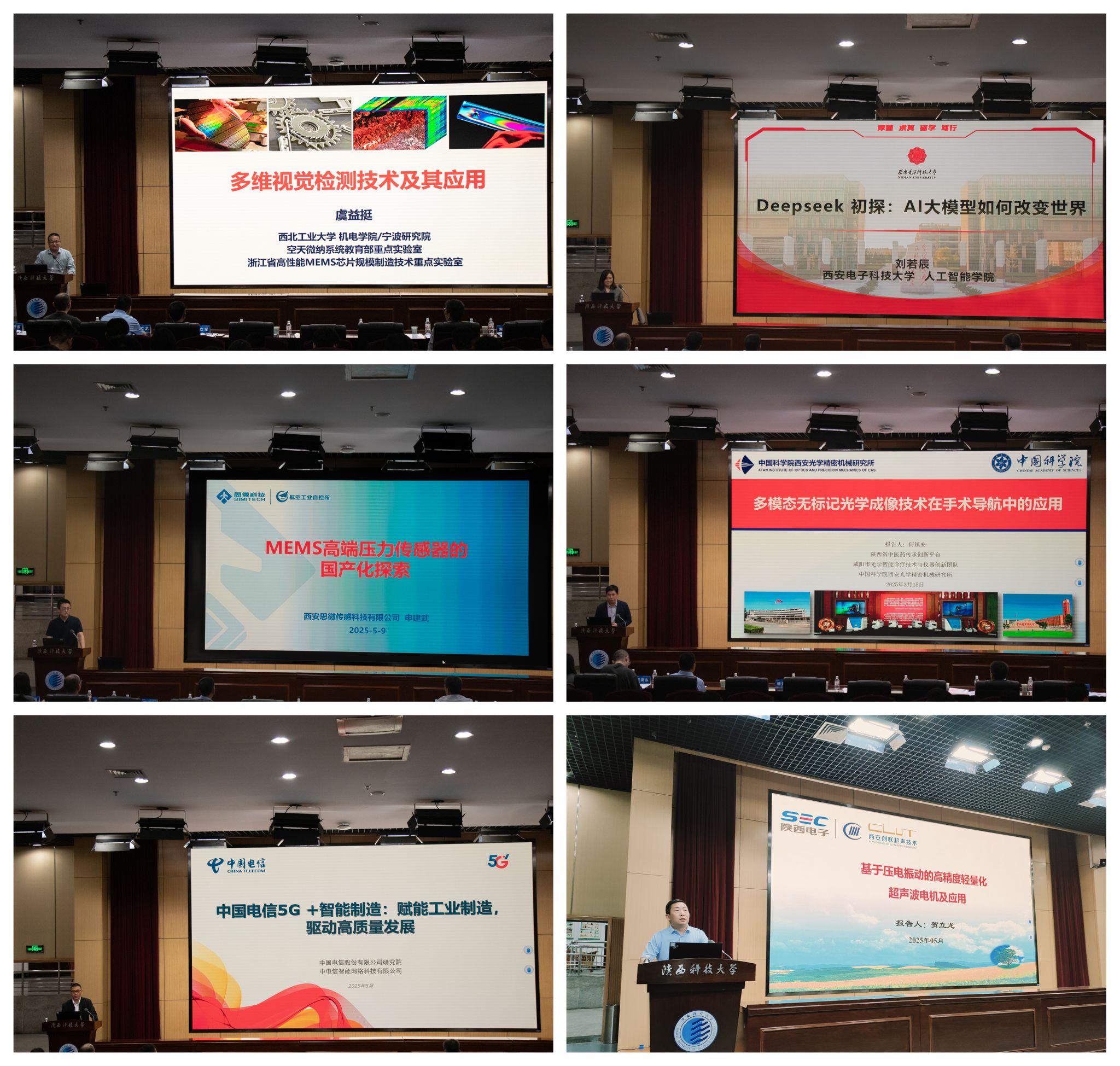 大會邀請西北工業大學常洪龍和虞益挺、西安交通大學林啟敬、火箭軍工程大學賈瑛、西安電子科技大學劉若辰、西安思微傳感科技有限公司申建武、中國科學院西安光機所何鎮安、中國電信研究院李雪峰、陜電集團西京電氣集團電子技術研究院賀立龍等作報告,從“‘紙’飛機研究進展”、“機器人柔性傳感器及其關鍵技術研究”、“羧基氧化石墨烯復合電極材料檢測偏二甲肼研究”、“多維視覺檢測技術及其應用”、“DeepSeek初探:AI大模型如何改變世界”、“MEMS高端壓力傳感器的國產化探索”、“多模態無標記光學成像技術在手術導航中的應用”、“中國電信5G+智能制造:賦能工業制造,驅動高質量發展”、“基于壓電振動的高精度輕量化超聲波電機及應用”等方面分析國內外智能制造與傳感探測領域的最新前沿及發展趨勢。