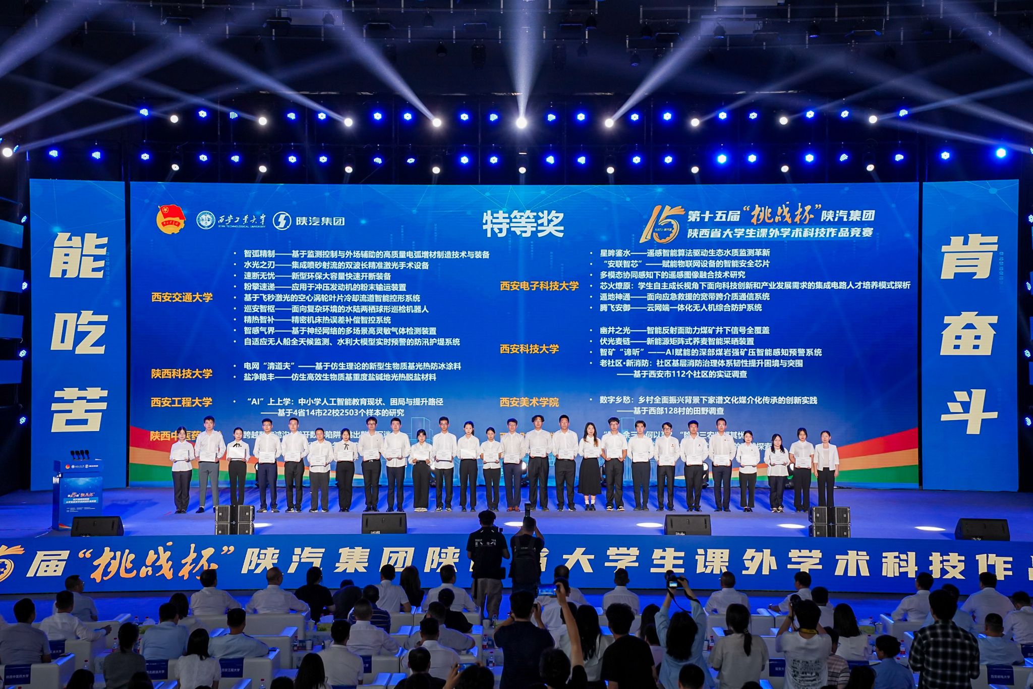 5月24日下午,由共青團(tuán)陜西省委、中共陜西省委教育工委、陜西省科學(xué)技術(shù)協(xié)會(huì)、陜西省社會(huì)科學(xué)院、陜西省學(xué)生聯(lián)合會(huì)、陜西省西咸新區(qū)開(kāi)發(fā)建設(shè)管理委員會(huì)聯(lián)合主辦,西安工業(yè)大學(xué)承辦的第十五屆“挑戰(zhàn)杯”陜汽集團(tuán)陜西省大學(xué)生課外學(xué)術(shù)科技作品競(jìng)賽的閉幕式暨頒獎(jiǎng)儀式在西安工業(yè)大學(xué)(未央校區(qū))舉辦。陜西科技大學(xué)項(xiàng)目獲特等獎(jiǎng)2項(xiàng),一等獎(jiǎng)3項(xiàng),二等獎(jiǎng)5項(xiàng),三等獎(jiǎng)2項(xiàng)。學(xué)校榮獲“優(yōu)秀組織獎(jiǎng)”。