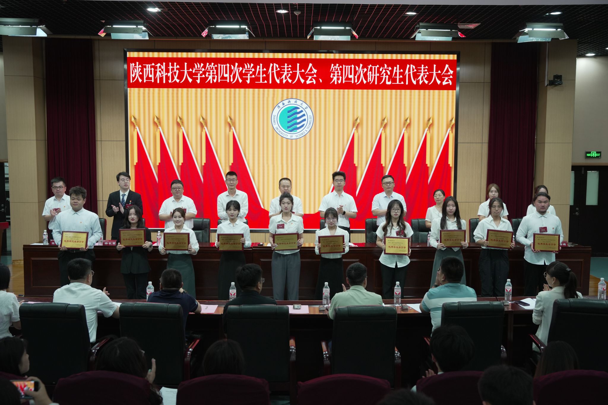 團委書記李鵬宣讀2024年度陜西科技大學優(yōu)秀學院學生會、優(yōu)秀學院研究生會評選結果,并對受表彰的組織表示祝賀,向長期以來支持我校學生會、研究生會工作的老師和同學們致以感謝。與會領導、嘉賓為獲獎集體頒獎。