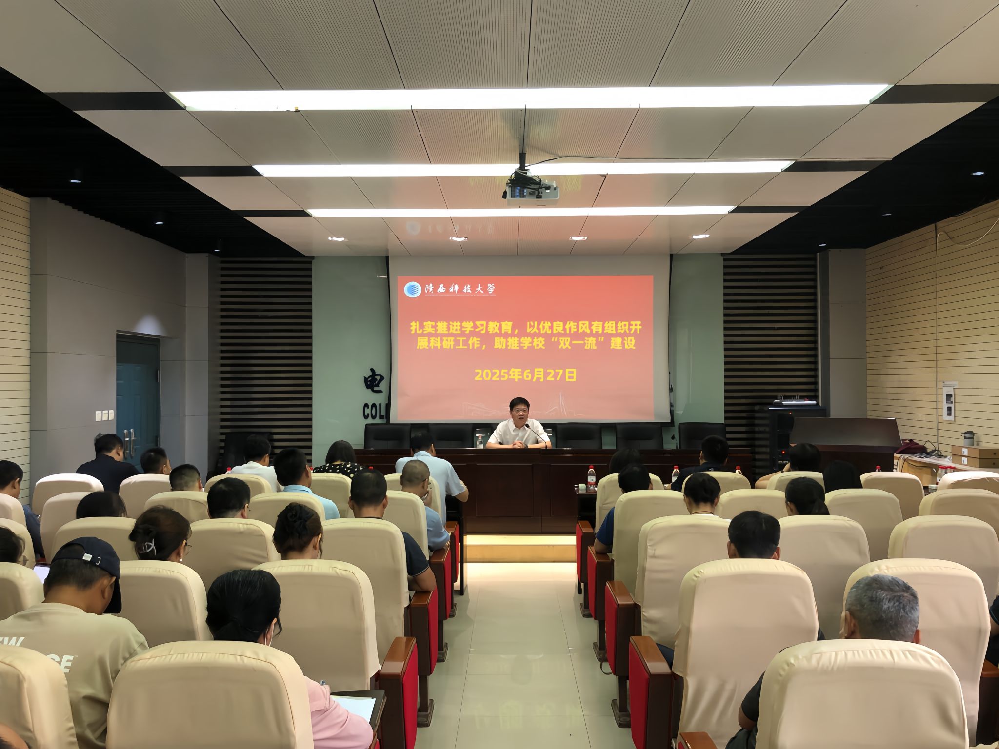 為持續深化深入貫徹中央八項規定精神學習教育成效,6月27日,黨委委員、副校長陸趙情以《扎實推進學習教育,以優良作風有組織開展科研工作,助推學校“雙一流”建設》為題,為分管聯系單位黨員干部講授作風建設專題黨課。