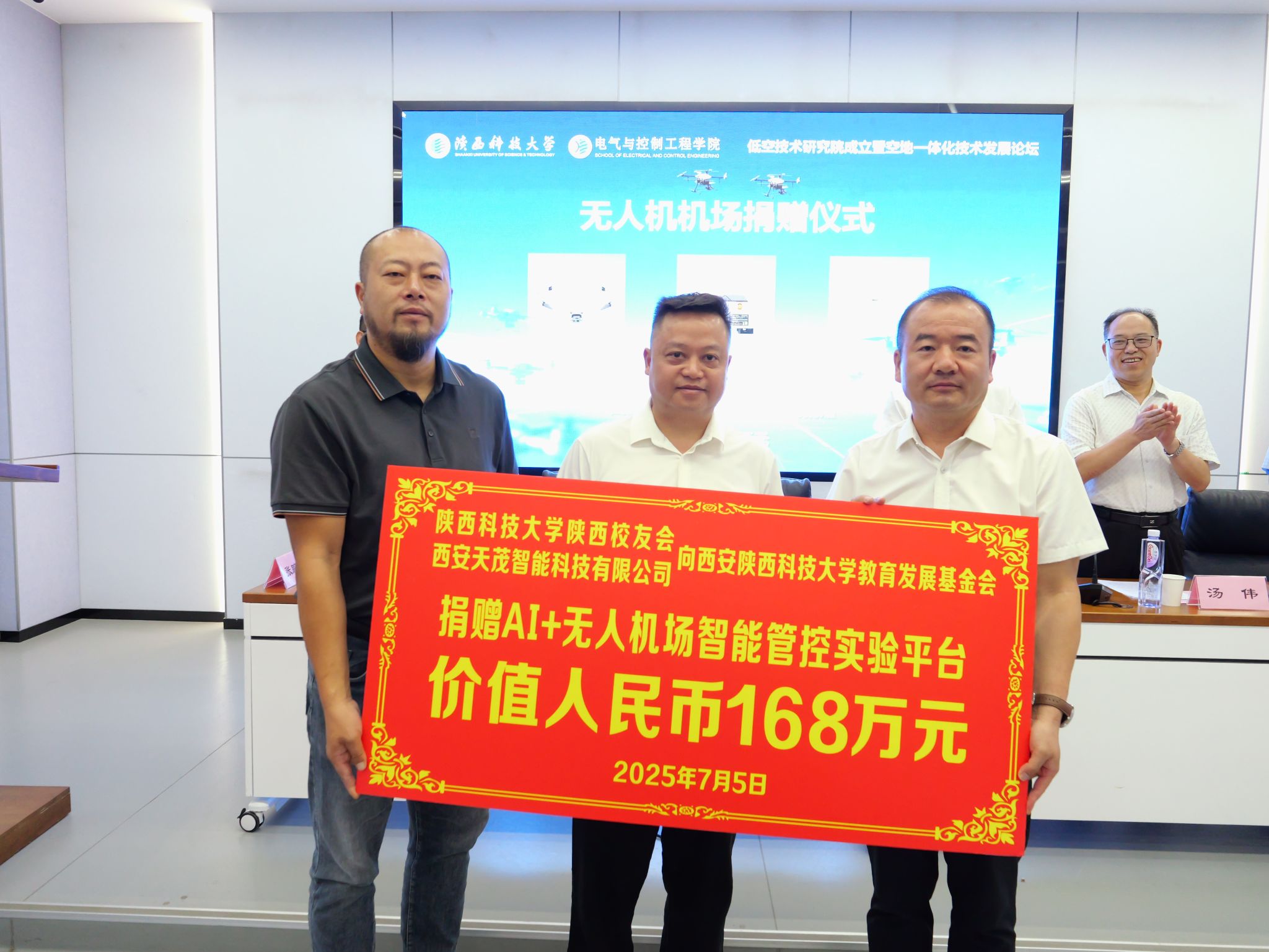 校友企業西安天茂智能科技有限公司聯合陜西科技大學教育發展基金會舉行了空地一體化設備捐贈儀式,將價值168萬元的無人機場智能管控實驗平臺贈與母校。西安天茂智能科技有限公司總經理李冬武、陜西科技大學校友總會秘書長殷立雄、陜科大陜西校友會秘書長唐秸,共同完成簽署捐贈協議、捐贈設備和頒發捐贈證書。