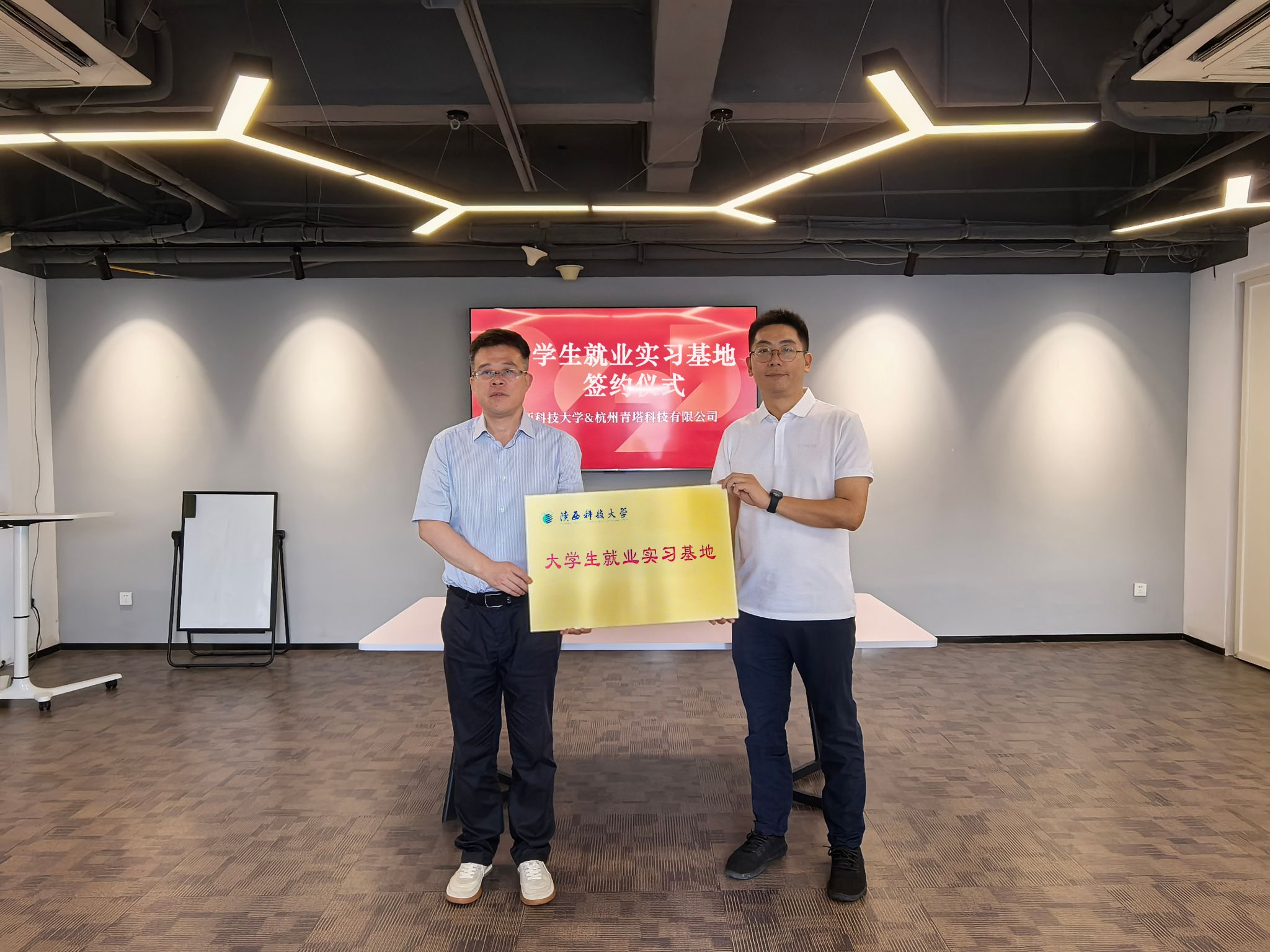 走訪企業期間,杭州青塔科技有限公司就數據賦能高校發展規劃、學科建設、人才培養等方面進行詳細介紹。雙方圍繞學校高質量發展重點難點問題和學生就業實習展開交流,郭強與青塔公司創始人兼CEO林世清共同為大學生就業實習基地揭牌,為下一步持續深化產教融合、推動校企協同育人奠定基礎。
