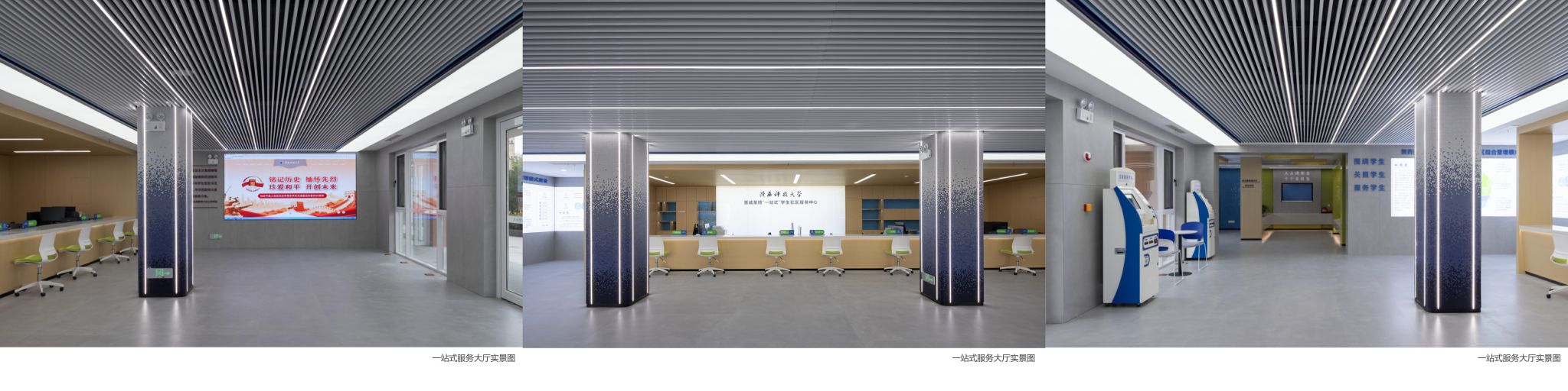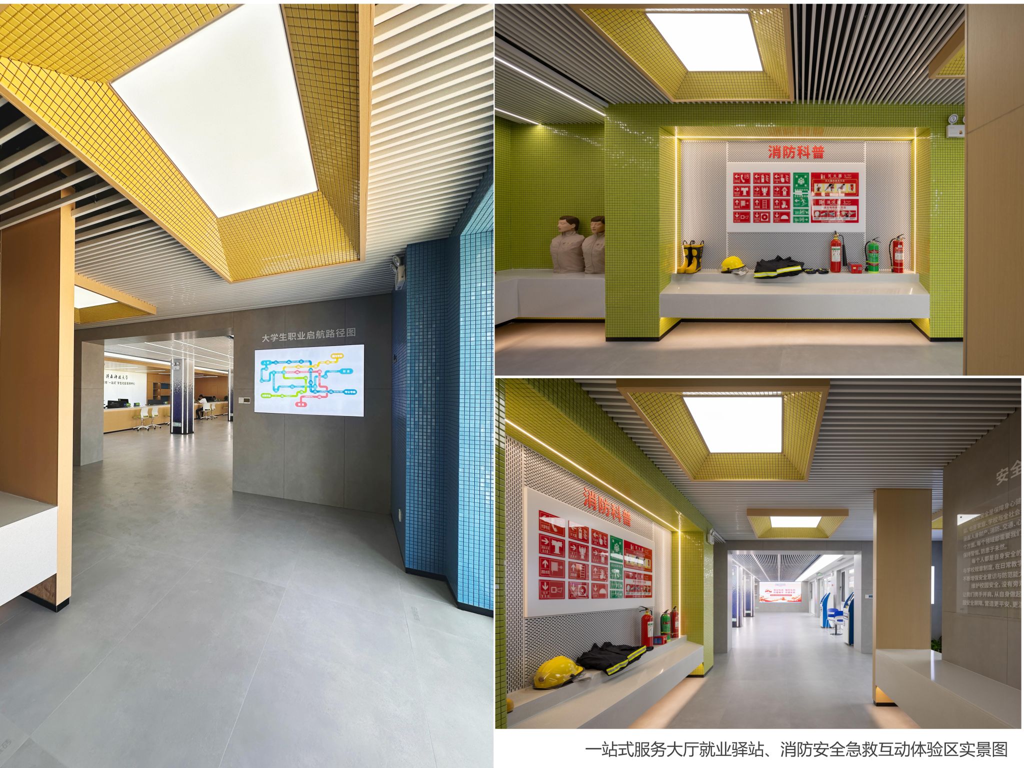 中心集中建設了面向學生的全方位服務平臺,一樓服務大廳設有十余個服務窗口,在大量問需調研的基礎上,為學生提供教務、學工、財務、后勤、保衛等各方面業務辦理及咨詢服務,大廳還配備了自助服務一體機。大廳南側設置了就業驛站、消防安全及應急救護互動體驗區、共享會議室。就業驛站集中展示職業生涯規劃導航知識,及時更新推送就業信息和各地人才政策,并常態化接待學生提供專業精準的生涯規劃及就業指導服務;消防安全及應急救護互動體驗區展示應急救護、火災防范等安全知識,并結合全國防災減災日主題不斷更新展陳內容,未來還將設置互動體驗設備,持續引導和服務廣大學生"人人講安全,個個會應急"并積極查找和化解身邊安全隱患;共享會議室既能用于日常“接訴即辦”的接待,又能為師生提供共享式的面對面交流舒適空間。