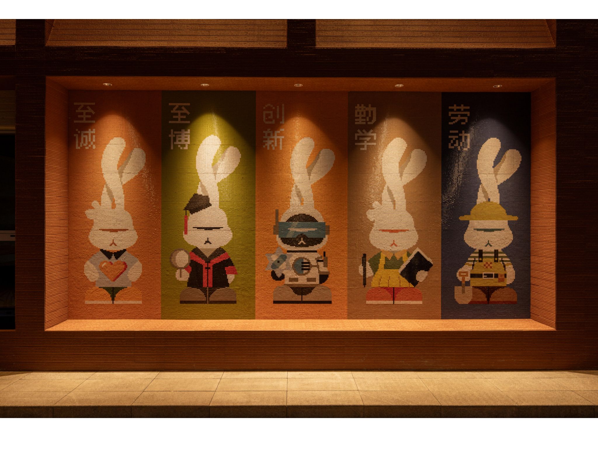 "至誠至博"一站式學生社區服務中心的建筑外觀現代簡潔,內部空間功能合理,陶瓷材質的天然美感既充分體現我校輕工專業特色,又與校園空間相得益彰融合,外墻磚的色彩搭配和諧統一,室內外馬賽克藝術拼畫既展現了現代材料美學和空間美學的結合,為社區環境注入了藝術活力,為廣大學生創造了既實用又美觀的學習生活空間,進一步推動學生社區從單純生活場所轉變為教育生活成長共同體的育人場域。
