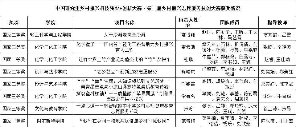 9月19日至22日,由中國學位與研究生教育學會、中國科協青少年科技中心聯合主辦,教育部學位管理與研究生教育司、全國農業專業學位研究生教育指導委員會、全國農科研究生志愿服務聯盟指導,魯東大學、安徽科技學院共同承辦的“中國研究生鄉村振興科技強農+創新大賽·第二屆鄉村振興志愿服務技能大賽”在山東煙臺舉辦。經過激烈角逐和嚴格評審,我校研究生團隊表現優異,共斬獲國家級獎項8項,其中二等獎5項、三等獎3項,學校榮獲優秀組織單位獎。