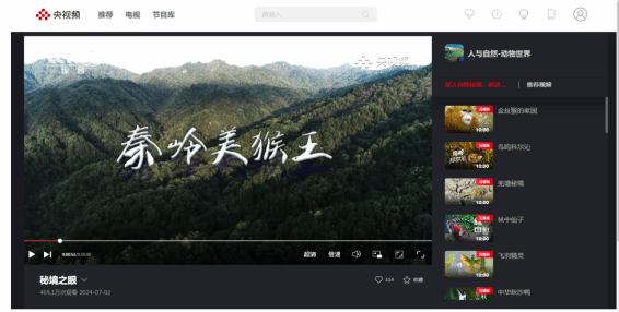 《秘境之眼》是中央廣播電視總臺重點打造的國家生態文明建設成果紀實專題系列節目。通過紅外相機與遠程攝像頭記錄中國自然保護地野生動植物的生態行為,采用超高清攝像器材與微距延時技術提升畫面表現力,系統呈現我國在生態文明建設方面取得的顯著成效,展現人與自然和諧共生的中國智慧與中國實踐。節目自2018年2月首播以來,持續展示綠尾虹雉、東北虎、亞洲象等200余種珍稀物種的珍貴影像,推出《珠峰秘境》《岷山秘嶺》等多個系列專題,形成穩定的每日18:50播出時段。