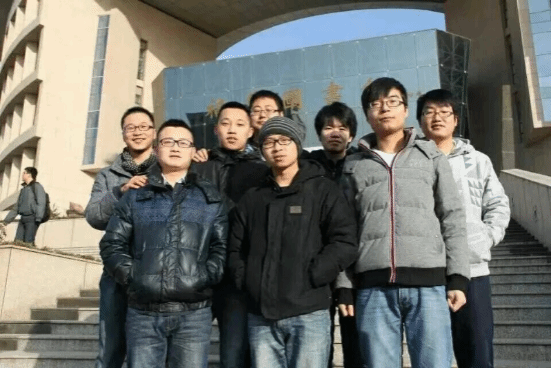 大學(xué)時(shí)期白雷(右一)與同學(xué)們?cè)趫D書館前合照