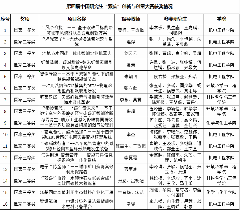 近年來,研究生院(黨委研究生工作部)圍繞研究生教育高質量發展和學科建設,以“雙碳”創新創意大賽為重要抓手,持續深化研究生對“雙碳”戰略理念的認知,提升其服務國家重大戰略的自覺性與參與“雙碳”建設的積極性。同時,以賽事為紐帶,學校不斷提高碳達峰碳中和相關專業人才培養質量,深化高校與社會的產學研融合,推動科研成果轉化落地。后續,我校將繼續鼓勵研究生在“雙碳”領域深耕探索,為國家“3060雙碳”目標貢獻科大力量。