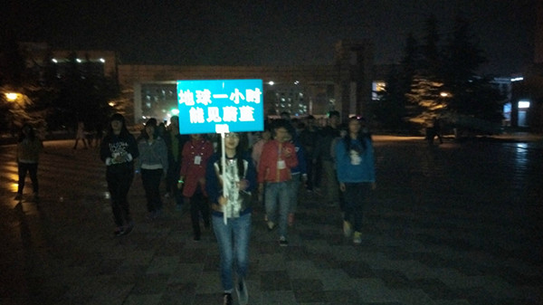 地球一小時(shí)(Earth Hour)是世界自然基金會(huì)(WWF)應(yīng)對(duì)全球氣候變化所提出的一項(xiàng)倡議,希望家庭及商界用戶關(guān)上不必要的電燈及耗電產(chǎn)品一小時(shí),來表明他們對(duì)應(yīng)對(duì)氣候變化行動(dòng)的支持,地球一小時(shí)在3月的最后一個(gè)星期六20:30~21:30期間熄燈。2015年地球一小時(shí)響應(yīng)全球應(yīng)對(duì)氣候變化的主題,聚焦當(dāng)前最急迫、最受關(guān)注的環(huán)境議題——霧霾,發(fā)出“能見蔚藍(lán)”的倡議。食品學(xué)院的大學(xué)生志愿者們從2010年至今已經(jīng)連續(xù)六年參與此項(xiàng)活動(dòng)。