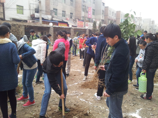 本次活動由輕工學院團委統一部署,大一、大二年級共計38個團支部組織100余名學生共同參加,各支部分別認領一顆樹苗,在學生宿舍10公寓北側原來堆放垃圾的空地上進行種植,并負責后期管理。