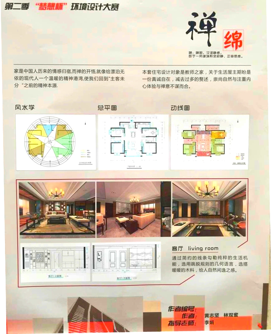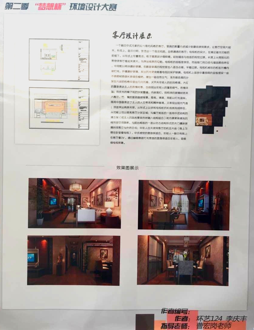 本次大賽由校工會(huì)、校團(tuán)委、設(shè)藝學(xué)院主辦,旨在為陜科大第二期教職工住宅戶主提供裝修方案,以功能性和人性化為設(shè)計(jì)重點(diǎn),同時(shí)兼顧滿足教職工對(duì)室內(nèi)裝潢的審美需求,著力體現(xiàn)科大學(xué)生的主人翁精神和設(shè)計(jì)素養(yǎng)。自去年年底大賽啟動(dòng)以來,共計(jì)布展120幅裝修方案,展出70余天,已被教職工采納的方案14套,獲獎(jiǎng)方案17套。一等獎(jiǎng)代表作品二等獎(jiǎng)代表作品 經(jīng)過專業(yè)評(píng)審組的合議,設(shè)藝學(xué)院環(huán)藝專業(yè)2011級(jí)黃志堅(jiān)、林雙蜜組合的180平米現(xiàn)代中式風(fēng)格裝修方案憑借極具震撼的視覺效果、實(shí)用時(shí)尚的設(shè)計(jì)思路、飽含傳統(tǒng)元素的設(shè)計(jì)理念獲得總冠軍,最終捧得“夢想杯”;2012級(jí)學(xué)生楊惠的100平米簡約現(xiàn)代風(fēng)格、李慶豐的140平米現(xiàn)代中式風(fēng)格、周斯昊的180平米現(xiàn)代中式風(fēng)格獲得亞軍;符益東的100平米北歐風(fēng)格、雍錦軒的120平米現(xiàn)代簡約風(fēng)格、孫鈺瑩的140平米簡約田園混搭裝修方案獲得季軍。張?jiān)降仁麑W(xué)生獲得了優(yōu)秀獎(jiǎng)。 作為設(shè)藝學(xué)院“畫筆點(diǎn)綴青春,設(shè)計(jì)服務(wù)校園“的系列品牌活動(dòng)之一,第二屆“夢想杯”為陜科大教職工提供了符合居住需求的設(shè)計(jì)方案亦鍛煉了同學(xué)們的專業(yè)能力,起到了促進(jìn)學(xué)風(fēng)、提振士氣的作用,也符合學(xué)院結(jié)合專業(yè)開展校園文化活動(dòng),解決實(shí)際問題的工作思路。頒獎(jiǎng)現(xiàn)場環(huán)藝教研室?guī)熒硎荆骸皦粝氡弊尭嗤瑢W(xué)感受到了環(huán)藝設(shè)計(jì)的獨(dú)特以及艱辛,每個(gè)精美的方案都來之不易。設(shè)藝學(xué)院執(zhí)行院長詹秦川在總結(jié)中客觀地對(duì)本屆夢想杯做出了點(diǎn)評(píng),指出此次活動(dòng)的設(shè)計(jì)水準(zhǔn)距離高標(biāo)準(zhǔn)還有一定差距,設(shè)計(jì)不僅要滿足一般市場的審美需求,更要盡力得到專業(yè)人士的認(rèn)可,教研室老師應(yīng)該進(jìn)一步發(fā)揮校園活動(dòng)第二課堂的功能,只有在實(shí)踐中教學(xué)方能提升育人的質(zhì)量。(責(zé)任編輯:杜楊 學(xué)生編輯:張寧)