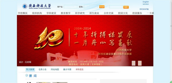 2014年是我校新校區建設十周年。12月25日起,我校開展了紀念新校區建設發展十周年為主題的一系列活動,通過大型主題圖片展覽,系列專題報道,電視紀實片、專題片,校報專刊,新媒體專題推送,廣播等形式,講好科大好故事,傳播好科大聲音,進行校史校情教育,全面反映學校十年來建設發展的奮斗與輝煌,激發師生的愛國愛校感情。該系列紀念活動生動準確地傳播了以團結奮進、拼搏進取為核心的新校區建設的優良傳統和工作作風,形成了宣傳輿論聲勢,振奮了師生精神,在科大內外反響強烈。機關黨委組織集體觀展保障系統黨委組織集體觀展材料科學與工程學院組織集體觀展大學生興致勃勃地觀展離退休老同志在觀展時認真記錄