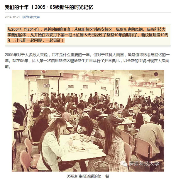 校電視臺推出了精心制作的十集電視紀實片《西安校區建設紀實》和電視專題片《十年拼搏 鑄就輝煌》,通過大量詳實、生動的視頻資料,生動地再現了新校區建設眾志成城、只爭朝夕的崢嶸歲月和十年砥礪奮進、鑄就輝煌的風雨歷程。電視片經校園有線電視、學校官方微信、騰訊視頻等途徑播出,迅速引發全社會關注,僅騰訊視頻上的的點擊率就達到3200多次。許多單位和個人還紛紛致電宣傳部希望得到該電視片的光盤作為留念。 官微平臺推送了“西安校區建設的‘絕密’照片”、“你肯定不知道的科研數據統計圖”、“小科和你一起看學校的新變化”、“漫話數學建模大賽的成績”、“我叫李明勇,已經從科大畢業了”、 “昨天·今天 老照片‘外’的時光掠影”等十個專題,以更加細膩動人、生動有趣的視角展現新校區發展點滴。截至目前,總閱讀量近4萬次,轉發收藏近2000次。官微粉絲們紛紛留言評論,“小禾”說:“很好,這期節目做的很好!我們畢業正好十年了,發到朋友圈里大家都很激動。謝謝小編。” “安寧”說:“為啥看了特別想哭。” “帶我去你生活的地方”說:“這期很棒,成果才說明實力。”