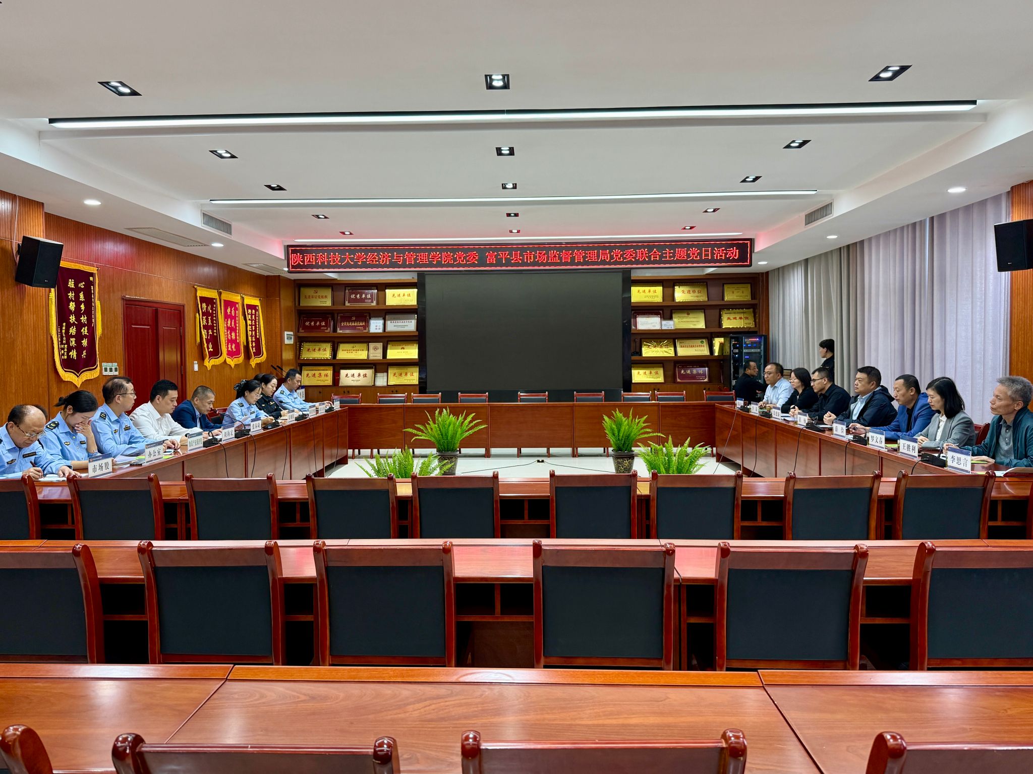 9月26日,經管學院黨委與渭南市富平縣市場監督管理局黨委聯合開展主題黨日活動。富平縣市場監督管理局黨委書記、局長張春琦,副局長劉海宏,經管學院黨委書記崔楠,院長薛儉,各系主任、科研平臺負責人及黨政辦公室主任等參加活動。
