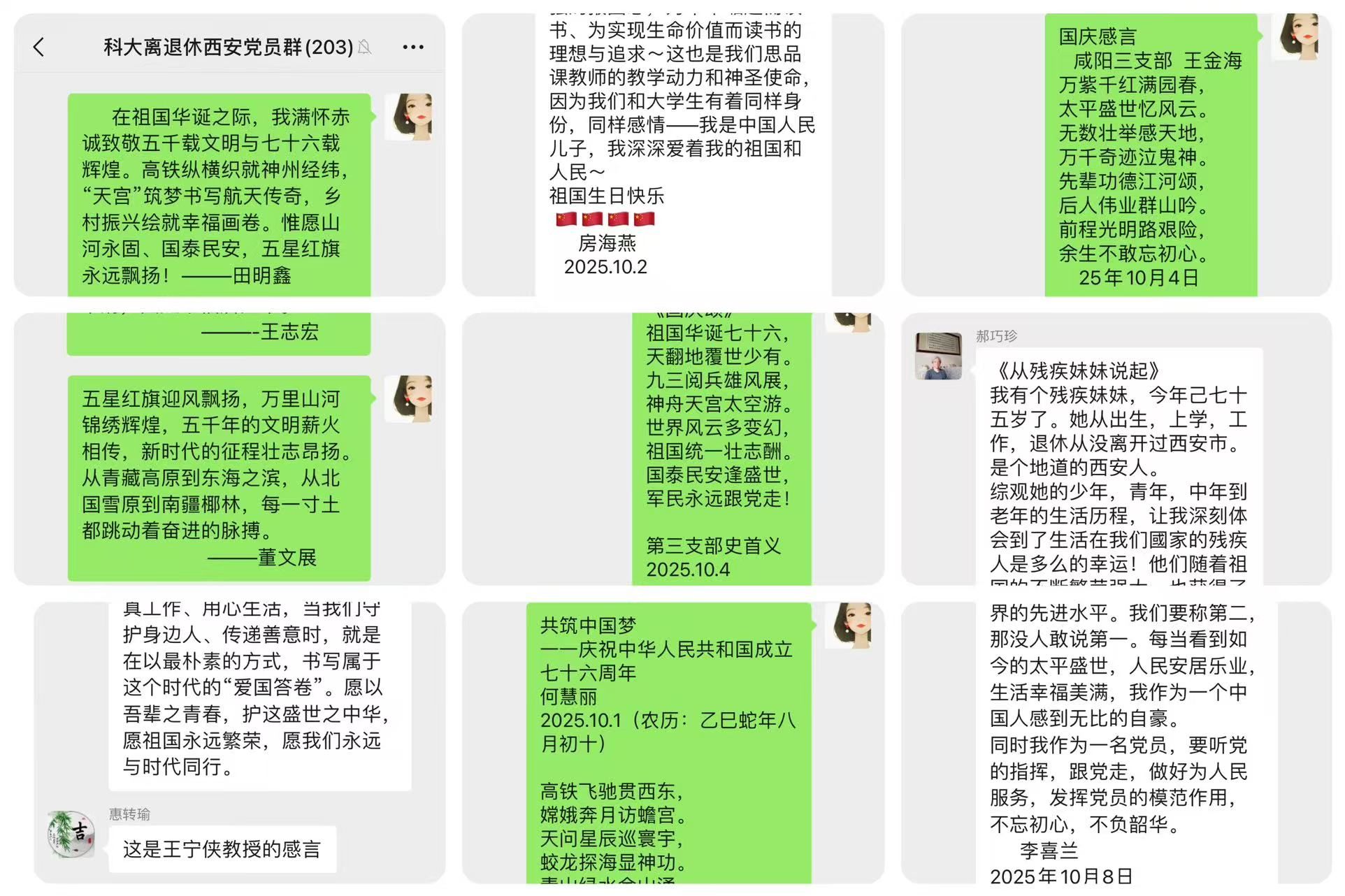 此次慶國慶感言征集活動,既是一次生動的愛國主義教育實踐,也是離退處黨委加強老同志思想政治引領的重要舉措。在以后的工作中,離退處黨委將繼續聚焦退休黨員精神文化需求,策劃更多貼合老同志生活、彰顯銀齡價值的活動,搭建老黨員發揮余熱、交流互動的平臺,讓退休黨員在溫馨關懷中安享晚年,為學校各項事業發展持續貢獻銀發力量。
