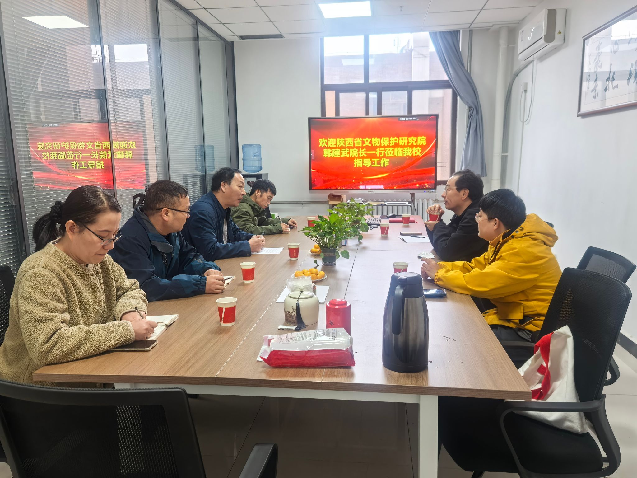 朱建鋒對韓建武一行的到來表示,感謝陜西省文物保護研究院長期以來對學校發展的支持。他詳細介紹了學校文物學科的發展情況,希望雙方以此次交流為契機,進一步加強在學科建設、人才培養、平臺建設等領域的深度合作,共同為文化強省建設貢獻更大力量。