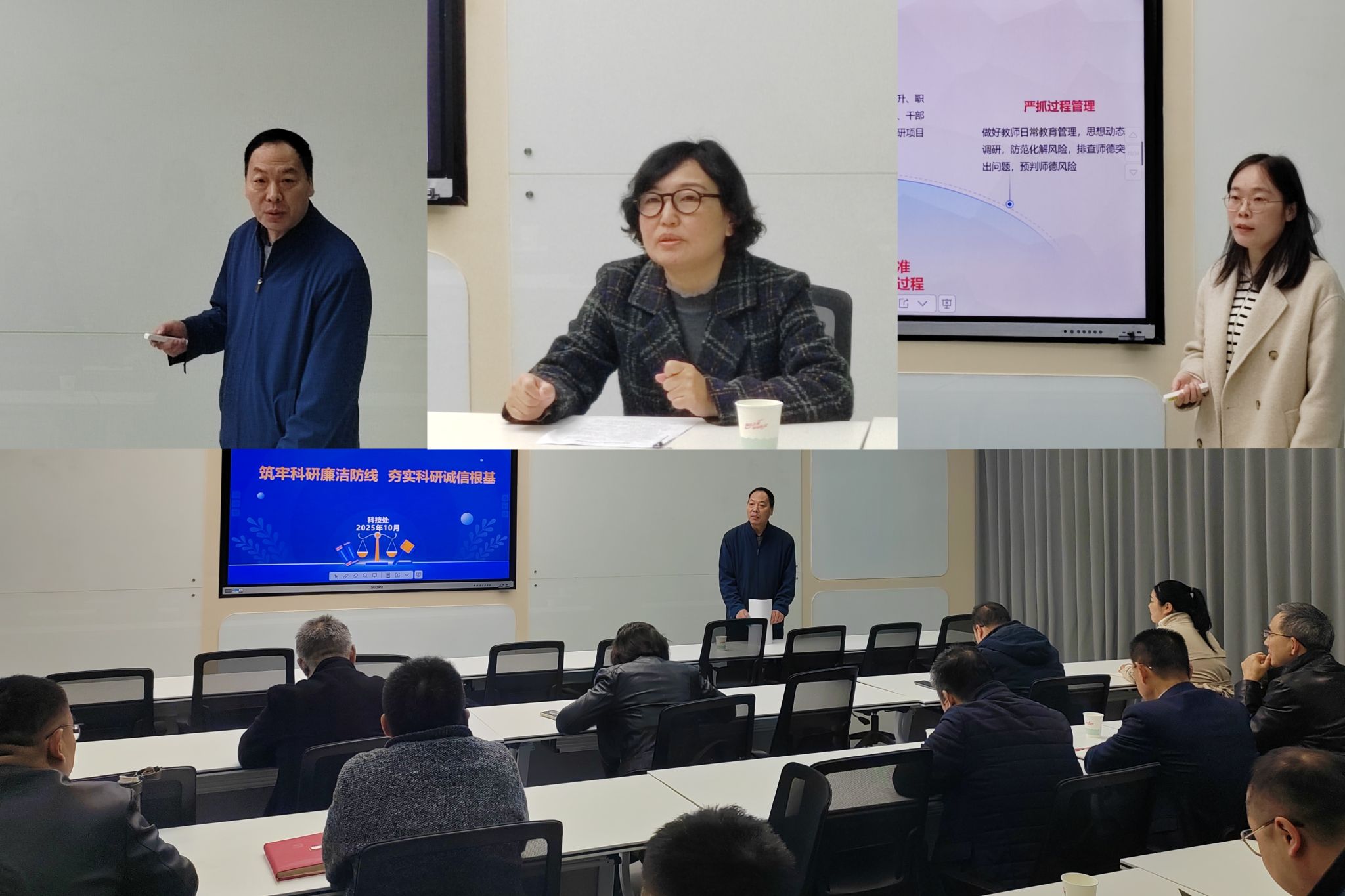 科技處處長朱建鋒系統(tǒng)解讀了科研誠信相關(guān)制度規(guī)范,提出了監(jiān)督防控建議。審計處副處長常瑩全面解讀了內(nèi)部控制審計和經(jīng)濟責(zé)任審計的制度框架、評價標(biāo)準(zhǔn)及操作流程,明確了“紀(jì)審協(xié)同”的實踐路徑。教師工作部干事張維靜結(jié)合師德師風(fēng)建設(shè)相關(guān)文件精神,重點解讀了師德師風(fēng)的相關(guān)要求,提出加強事前預(yù)防、提高監(jiān)督實效建議。