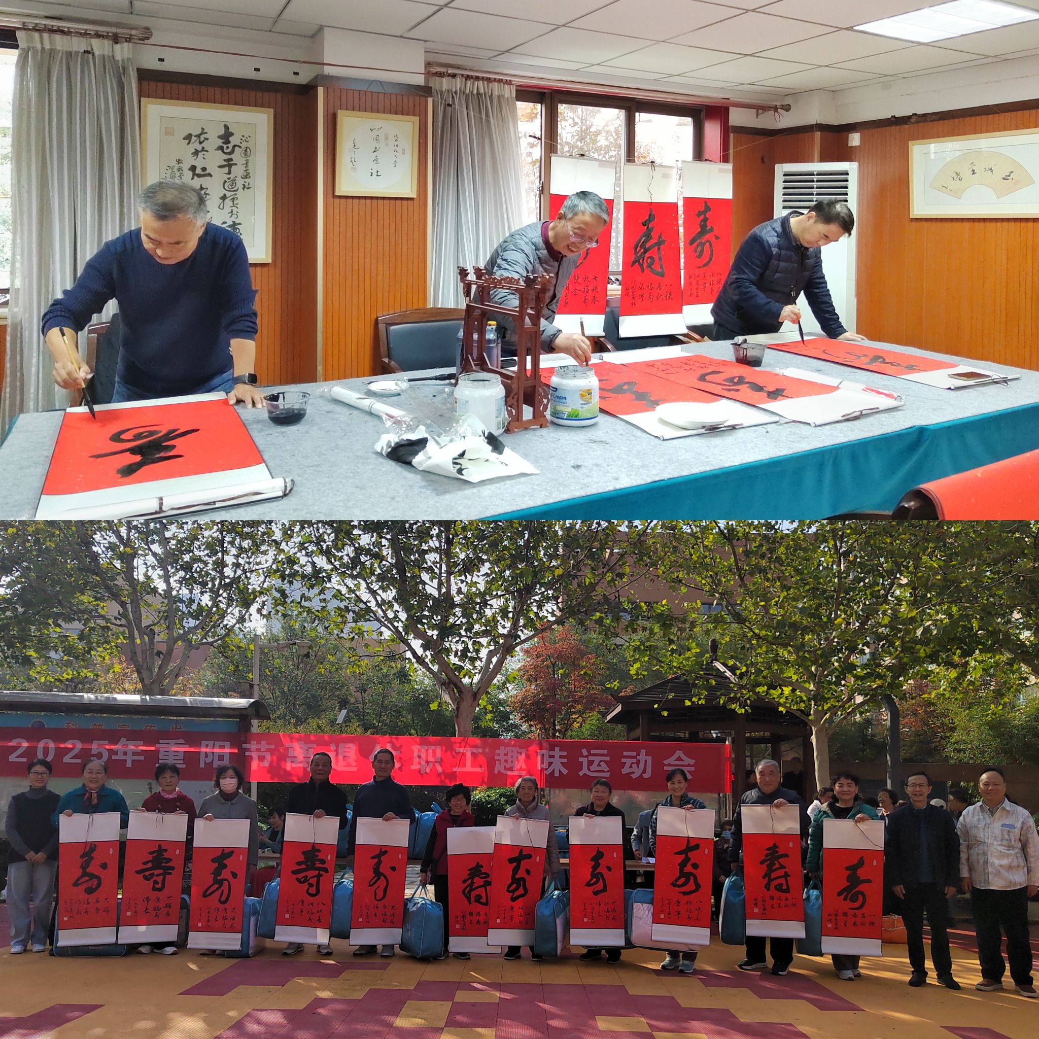 墨香傳情慶重陽,銀齡揮毫送安康。離退處組織書畫社老同志開展 “情暖重陽” 筆會活動,大家歡聚一堂、其樂融融,以筆墨寄情,共慶佳節。活動現場墨香陣陣,老同志們齊聚案前揮毫潑墨,將對中國傳統文化的深刻感悟與共度重陽的喜悅之情傾注筆尖。一幅幅氣勢磅礴的書法作品躍然紙上,“福”“壽”“壽而康” 等寓意美好的筆墨,既展現了老同志們積極樂觀的心態,更飽含著對美好生活的歌頌與贊美。此次筆會共創作 40 余幅優秀書法作品,全部贈予校內 70、80 周歲的老同志,不僅傳遞了老同志之間互助友愛的正能量,更讓中華民族孝親敬老的傳統美德在筆墨書香中代代相傳。