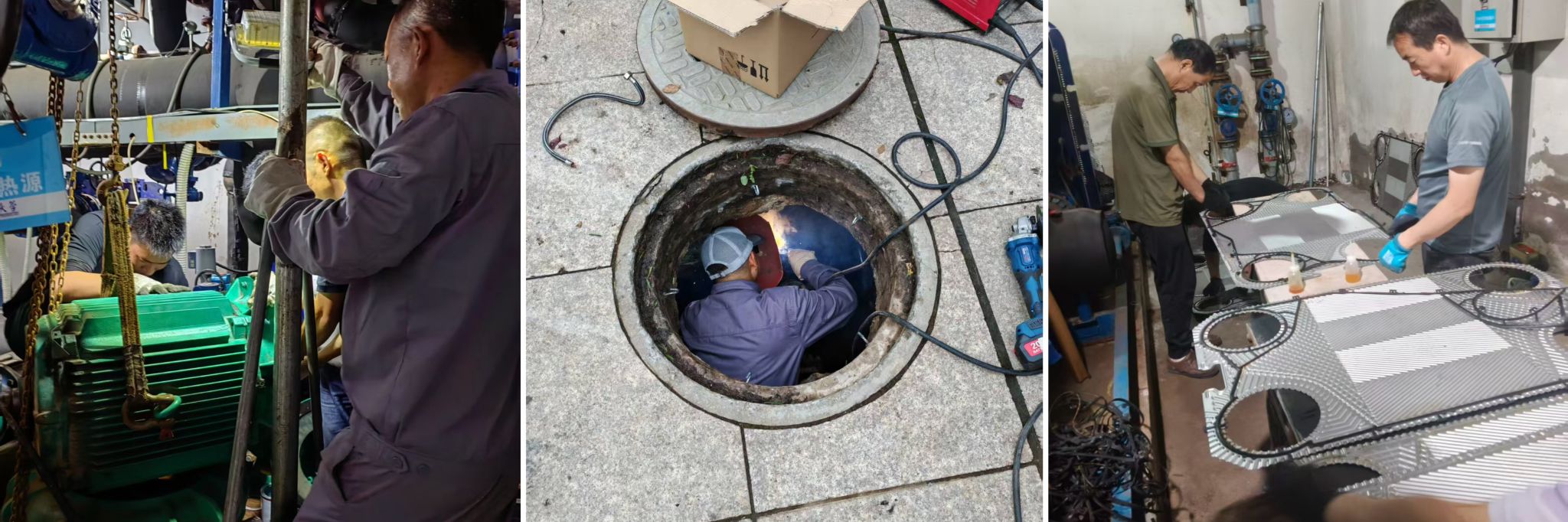全面檢修除隱患。秉持“冬病夏治”理念,后勤集團充分利用非供暖期對供暖系統(tǒng)開展全方位排查維護。熱源保障上,重點檢修各熱交換站核心設備,針對2#熱交換站(承擔家屬區(qū)11.83萬平方米供暖)上一采暖季設備漏水問題,暑假制定專項方案,拆卸清洗4臺板式換熱器、更換484條老化密封膠條,徹底恢復換熱效率。管網排查中,水工團隊對地下主干管網及樓宇管道實施拉網式檢查,修復跑冒滴漏問題,預防性更換老舊管道、閥門密封件等易損部件,從源頭降低故障風險。