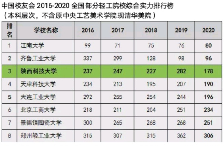 12月27日,艾瑞深中國(guó)校友會(huì)網(wǎng)(cuaa.net)正式公布《2020中國(guó)大學(xué)評(píng)價(jià)研究報(bào)告—高考志愿填報(bào)指南》,最新發(fā)布校友會(huì)2020中國(guó)大學(xué)排名1200強(qiáng)榜單。2020年校友會(huì)排名依據(jù)國(guó)家“雙一流”建設(shè)最新要求,對(duì)中國(guó)大學(xué)評(píng)價(jià)指標(biāo)體系做了改進(jìn)與調(diào)整,陜西科技大學(xué)在部分關(guān)鍵性指標(biāo)方面取得突破性發(fā)展:居全國(guó)第178位,較2019年躍升104位,位列陜西省高校第10位,全國(guó)輕工特色院校第3位,整體實(shí)力躋身中國(guó)同類高校第一方陣。