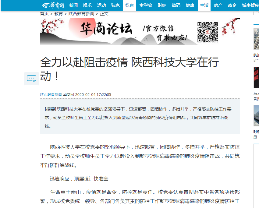 華商網:全力以赴阻擊疫情 陜西科技大學在行動!