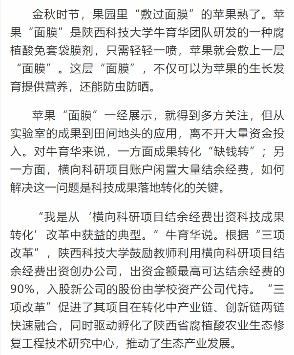 近日,《光明日報》報道我校落實科技成果轉化“三項改革”政策力促“轉成功”“轉得好”。