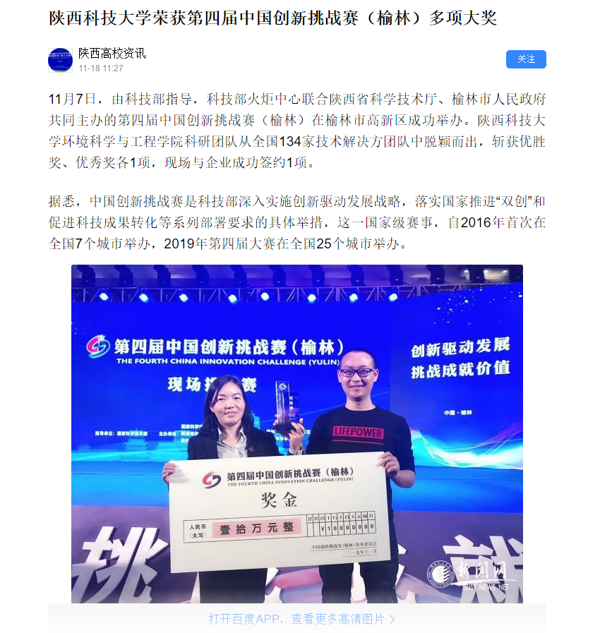 百度APP:陜西科技大學榮獲第四屆中國創新挑戰賽(榆林)多項大獎