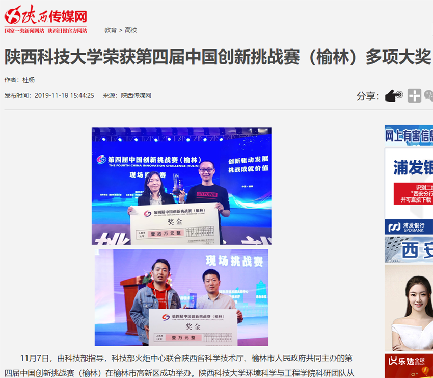 人民日報APP:陜西科技大學榮獲第四屆中國創新挑戰賽(榆林)多項大獎