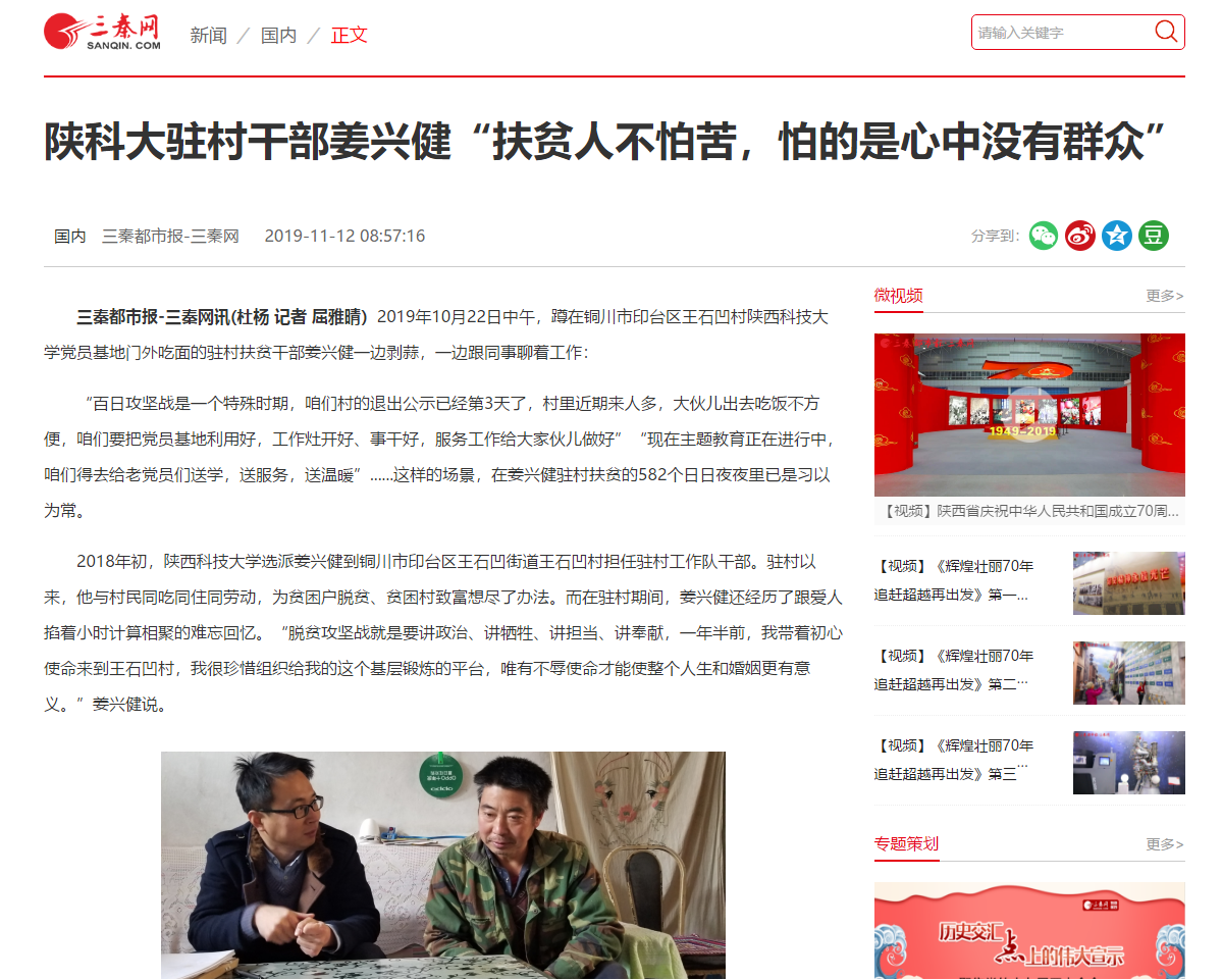 三秦網(wǎng):陜科大駐村干部姜興健:“扶貧人不怕苦,怕的是心中沒(méi)有群眾”