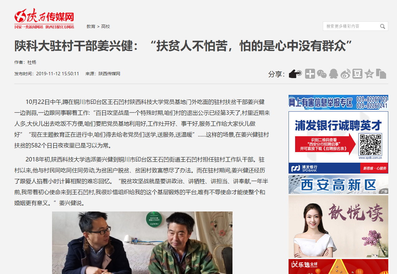 網(wǎng)易新聞:陜科大駐村干部姜興健:“扶貧人不怕苦,怕的是心中沒(méi)有群眾”