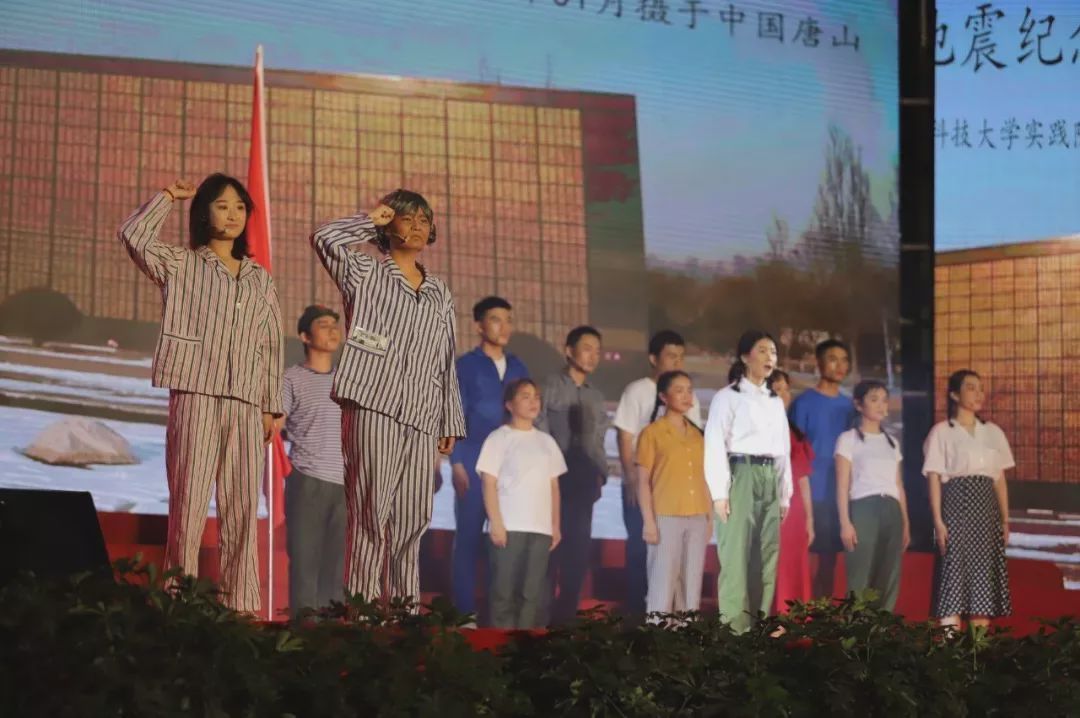 這一幕,發生在43年前的唐山大地震中,陜西科技大學(原西北輕工業學院)實習隊師生在強震面前,高舉黨旗,用火紅的青春書寫了西輕人不屈的誓言。這一幕,重現于《2019陜西科技大學迎新晚會》和《陜西科技大學60周年校慶晚會》的舞臺上,一群90后的科大學子,眼含熱淚,用真摯的感情詮釋了對母校愛的深沉。這一刻,掌聲雷動、臺上的演員與臺下的觀眾情感共鳴,熱淚盈眶。