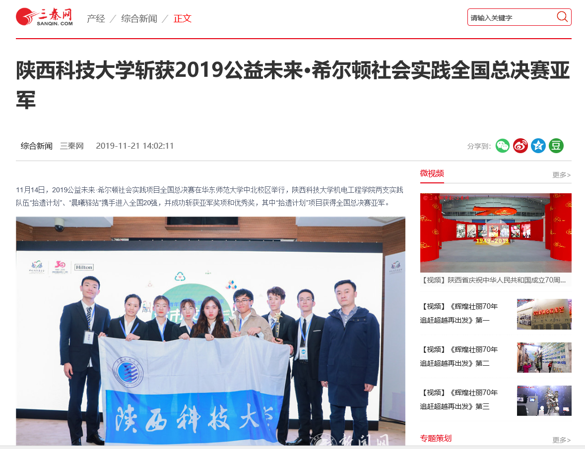 三秦網:陜西科技大學斬獲2019公益未來·希爾頓社會實踐全國總決賽亞軍