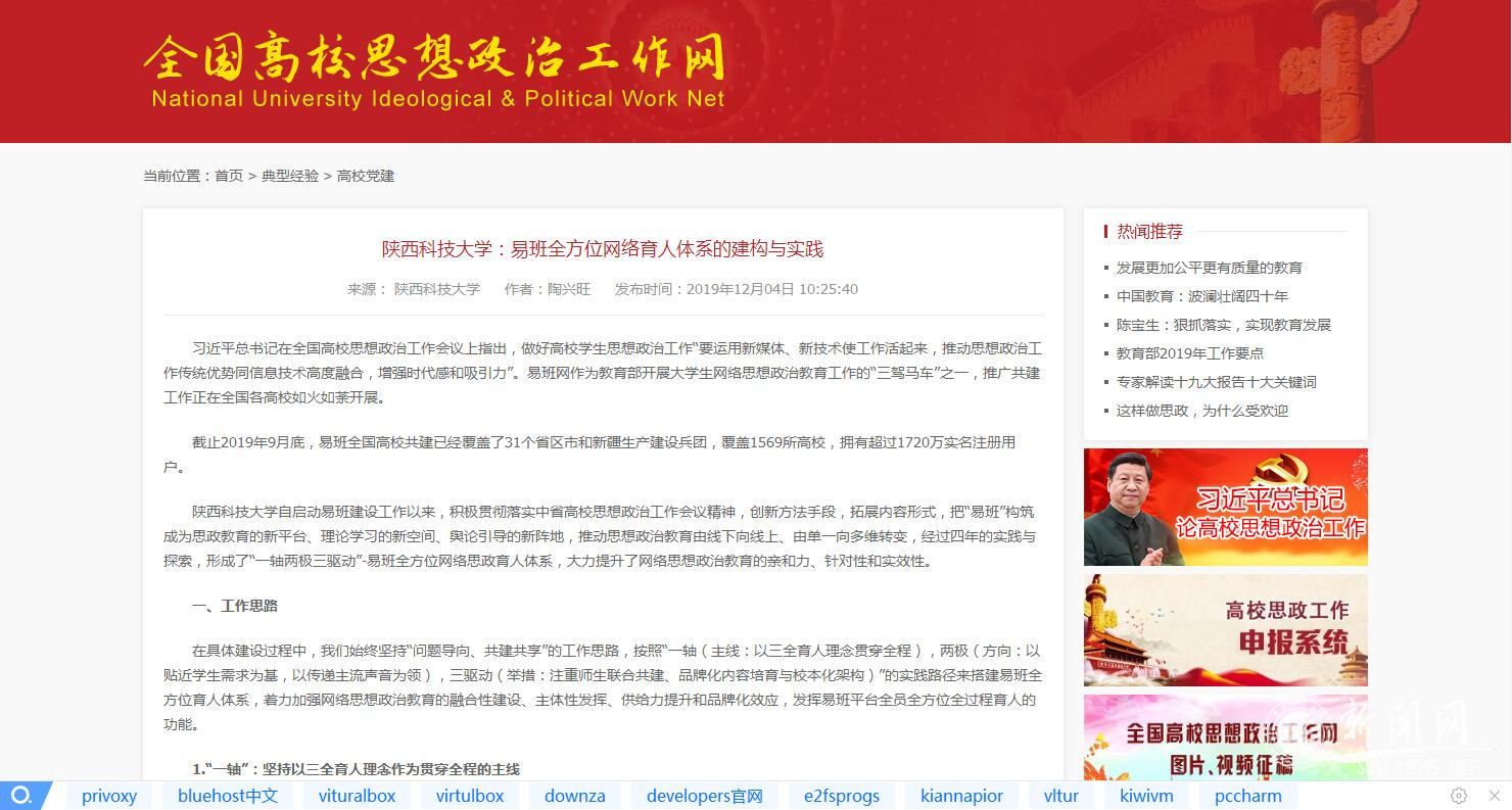 全國高校思想政治工作網:陜西科技大學易班全方位網絡育人體系的建構與實踐