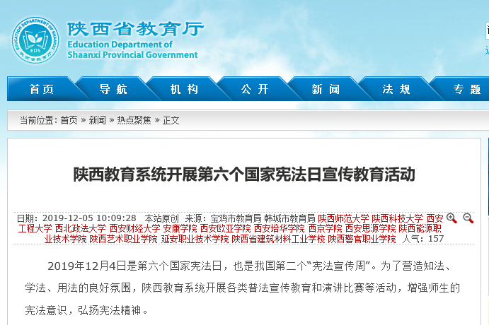 陜西教育系統開展第六個國家憲法日宣傳教育活動