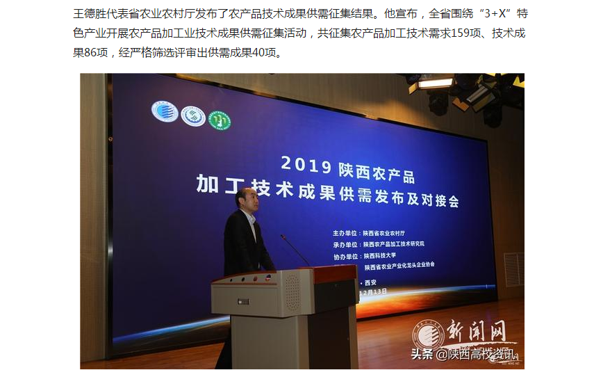 百度APP:2019陜西農產品加工技術成果供需發(fā)布及對接會在陜西科技大學舉辦