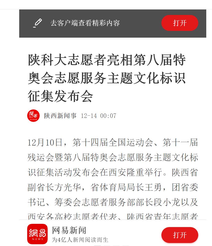 網(wǎng)易新聞APP:陜科大志愿者亮相第八屆特奧會志愿服務(wù)主題文化標(biāo)識征集發(fā)布會