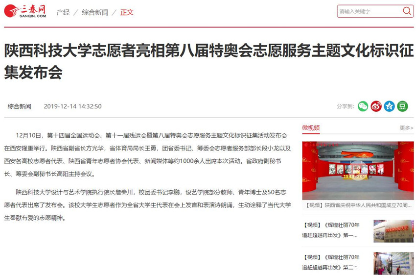 三秦網(wǎng):陜西科技大學(xué)志愿者亮相第八屆特奧會志愿服務(wù)主題文化標(biāo)識征集發(fā)布會