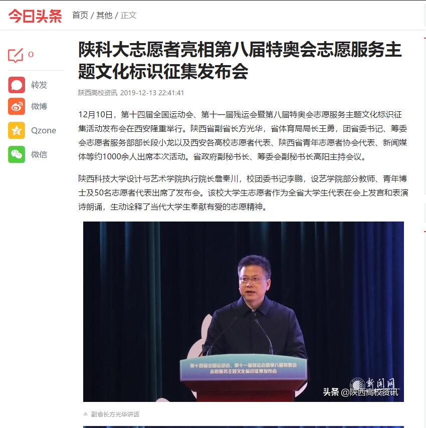 今日頭條:陜科大志愿者亮相第八屆特奧會志愿服務(wù)主題文化標(biāo)識征集發(fā)布會