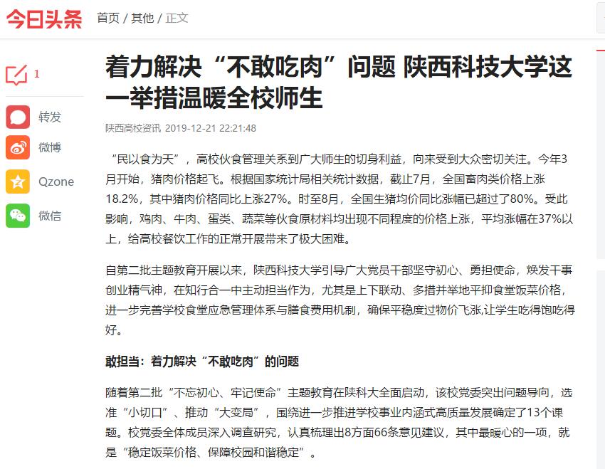 今日頭條APP:著力解決“不敢吃肉”問題 陜西科技大學這一舉措溫暖全校師生