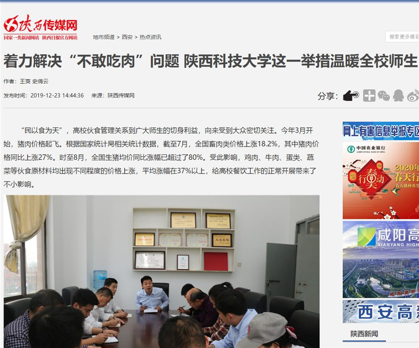 三秦網:著力解決“不敢吃肉”問題 陜西科技大學這一舉措溫暖全校師生